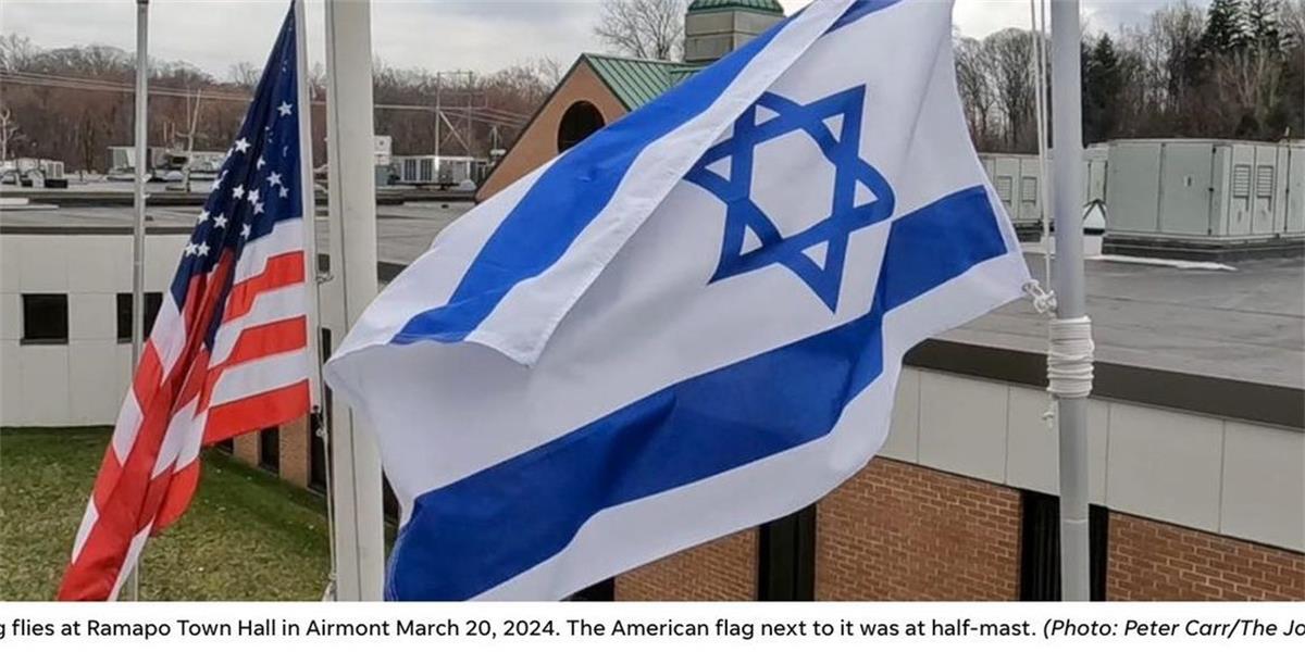 From news articles, it appears that the Israeli flag has been displayed “upon” Ramapo Town Hall.